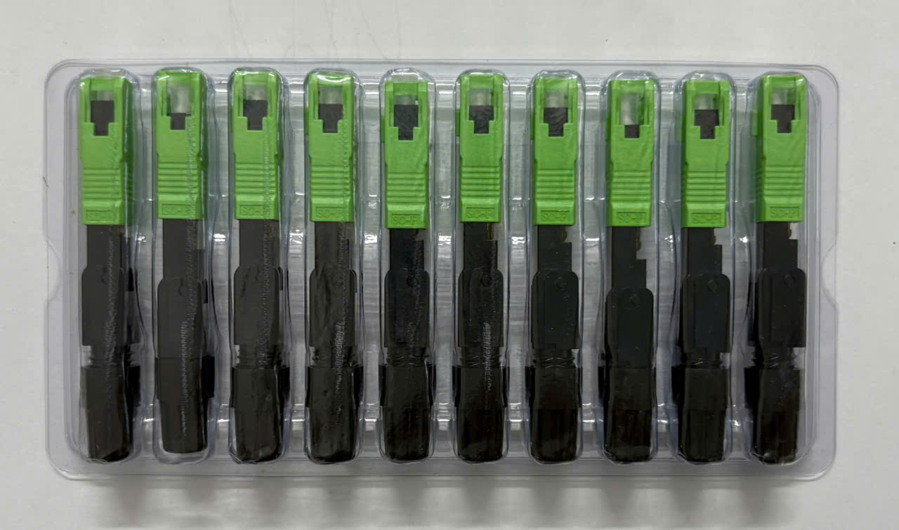 Đầu Nối Quang Nhanh Fast Connector SC/APC, dùng để kết nối dây thuê bao FTTH, nối quang nhanh, phát triển thuê bao quang FTTH, chỉ với dao cắt sợi quang, kìm tuốt sợi quang, là người dùng có thể đấu nối quang FTTH nhanh chóng, tiện dụng